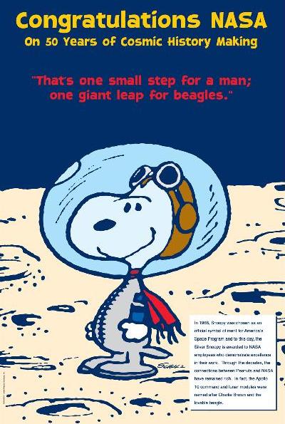 Snoopy ha acabado siendo mascota de la NASA. La agencia espacial norteamericana otorga el Premio Snoopy a sus empleados y contratistas por logros vinculados a la mejora de la seguridad o al éxito en una misión espacial. También la NASA bautizó como Charlie Brown al módulo de mando de la misión Apolo 10 y como Snoopy al módulo lunar.